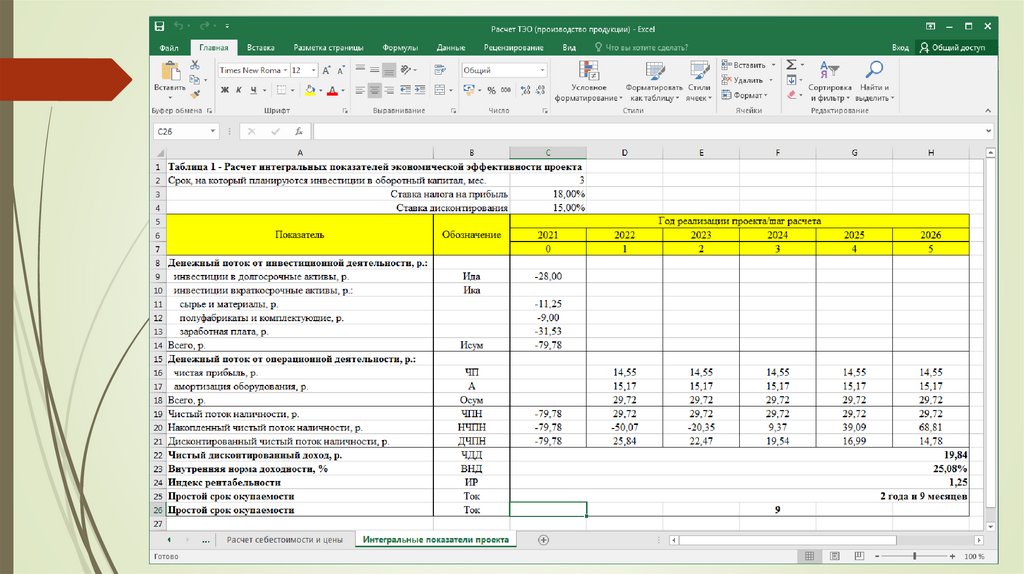 5. Утвердить файл MS Excel с расчетами у консультанта по ТЭО.
