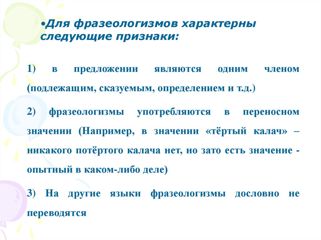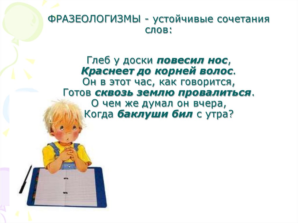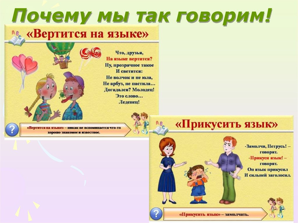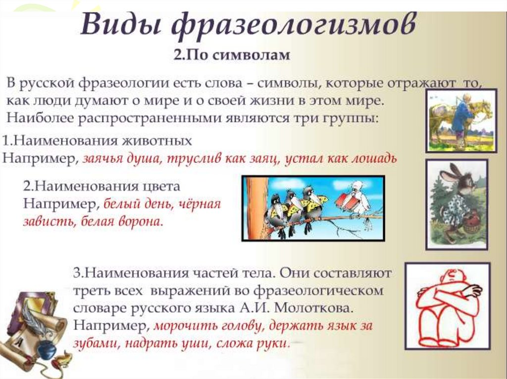 выбрать вид фразеологизмов, которые будем изучать подробно;