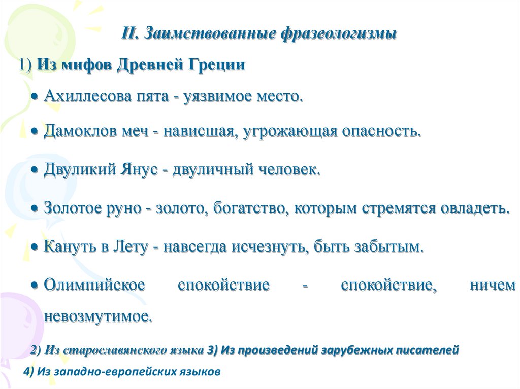II. Заимствованные фразеологизмы1) Из мифов Древней Греции