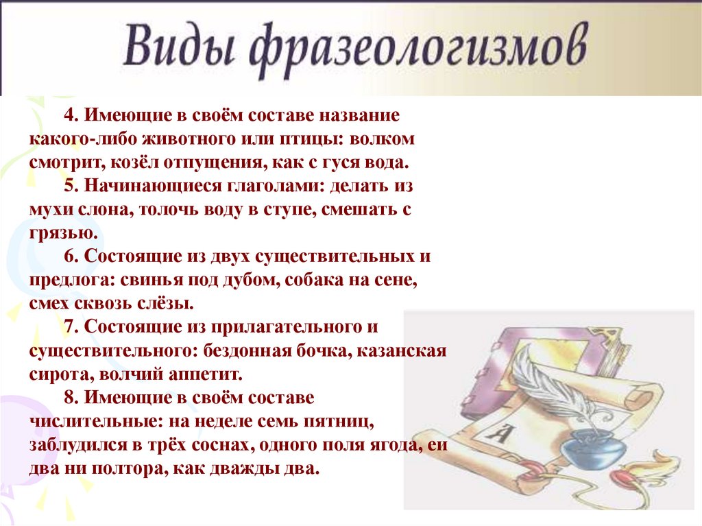 4. Имеющие в своём составе названиекакого-либо животного или птицы: волком