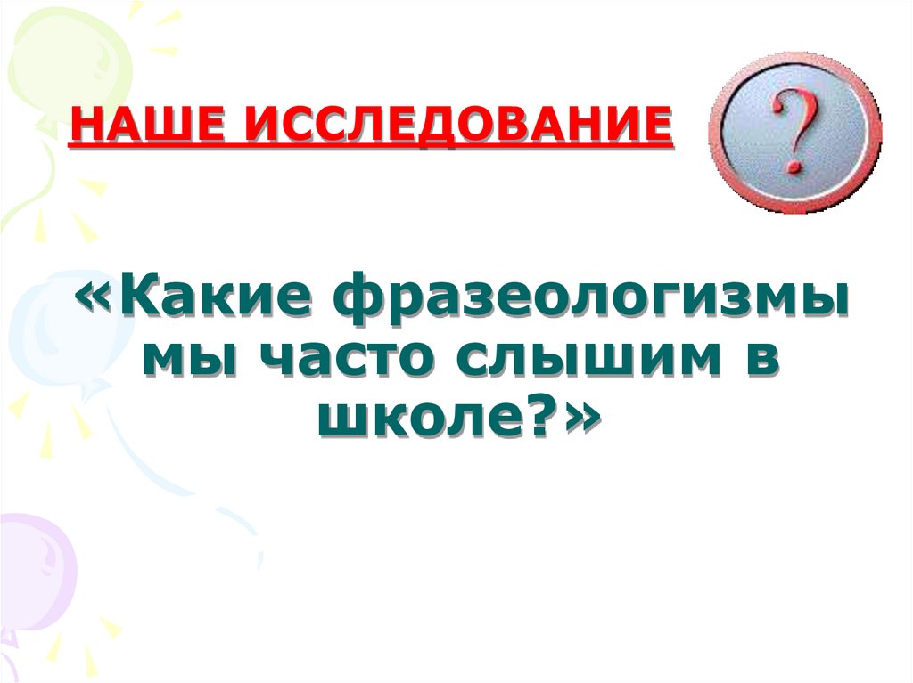 НАШЕ ИССЛЕДОВАНИЕ«Какие фразеологизмы