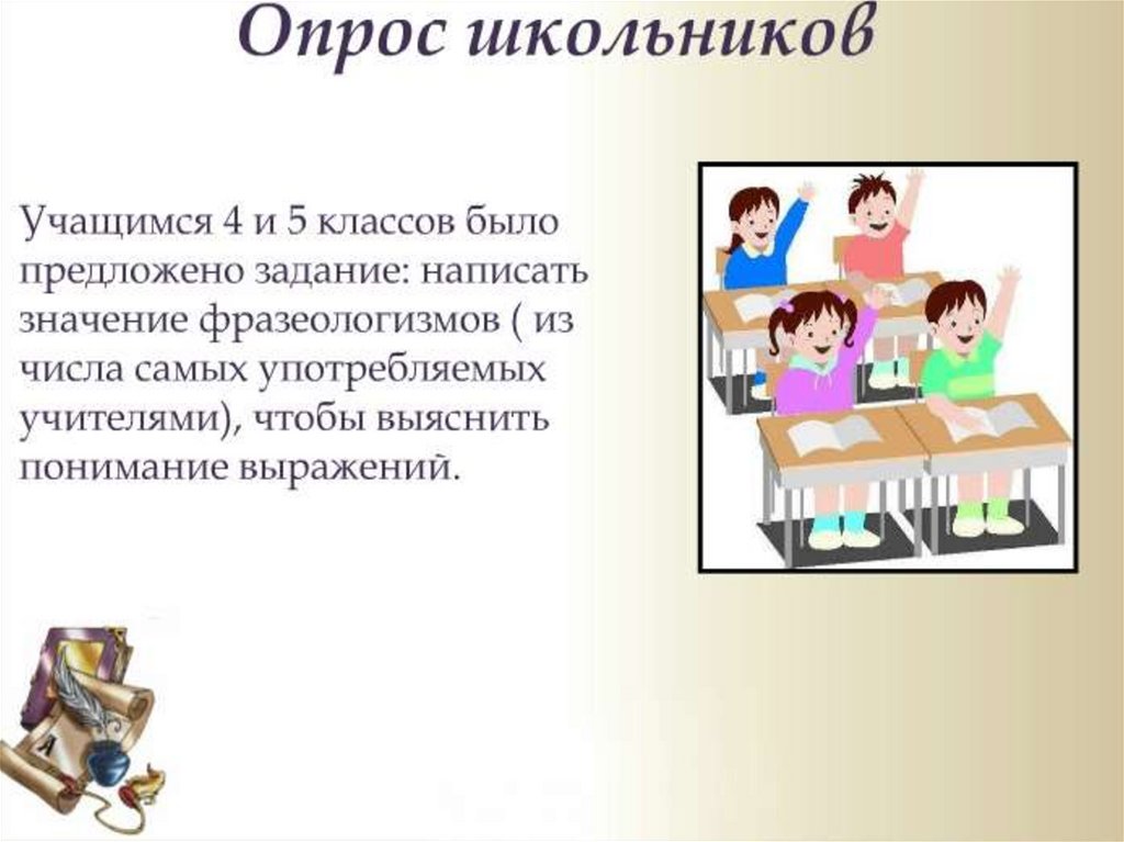 провести анкетирование среди учителей на тему «Какие фразеологизмы