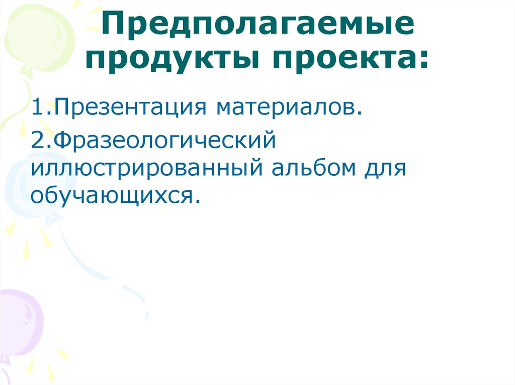 Цель проекта: Собрать и систематизироватьматериал о фразеологизмах для дальнейшего
