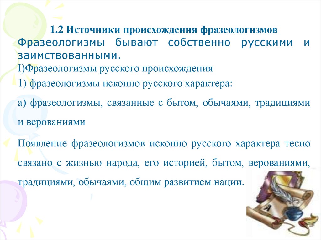 1.2 Источники происхождения фразеологизмовФразеологизмы бывают собственно русскими и
