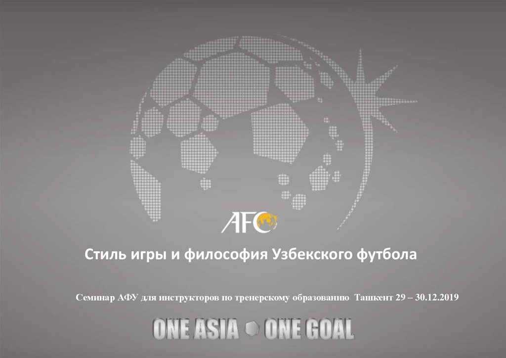 Стиль игры и философия Узбекского футболаСеминар АФУ для инструкторов по тренерскому образованию Ташкент 29 – 30.12.2019