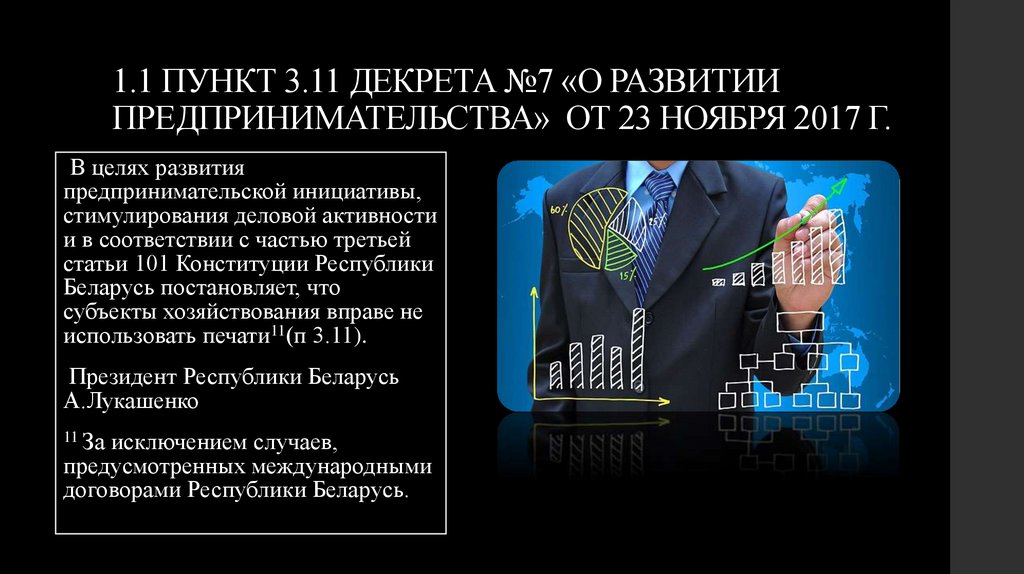 1.1 ПУНКТ 3.11 ДЕКРЕТА №7 «О РАЗВИТИИПРЕДПРИНИМАТЕЛЬСТВА» ОТ 23 НОЯБРЯ 2017 Г.