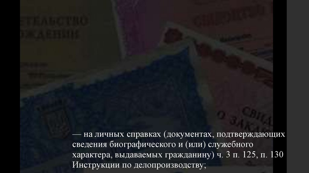 — на личных справках (документах, подтверждающихсведения биографического и (или) служебного