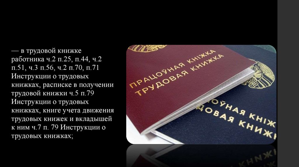 — в трудовой книжкеработника ч.2 п.25, п.44, ч.2