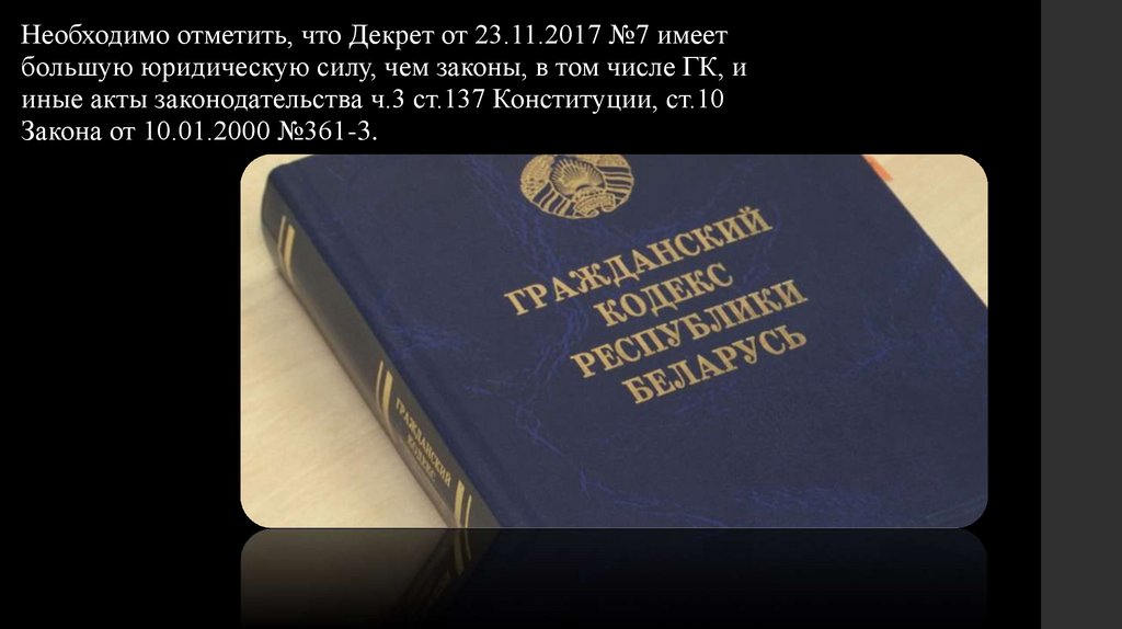 Кроме того, рассматриваемое нововведение Декрета от23.11.2017 № 7 полностью соотносится с параллельно