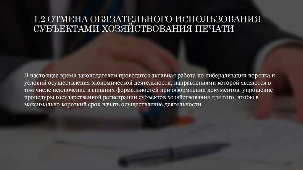 1.2 ОТМЕНА ОБЯЗАТЕЛЬНОГО ИСПОЛЬЗОВАНИЯСУБЪЕКТАМИ ХОЗЯЙСТВОВАНИЯ ПЕЧАТИ
