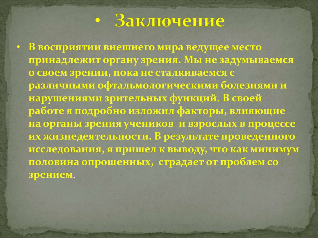 • В восприятии внешнего мира ведущее местопринадлежит органу зрения. Мы не задумываемся