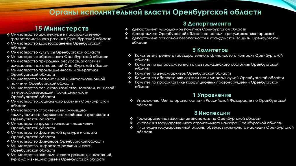 Органы исполнительной власти Оренбургской области15 Министерств