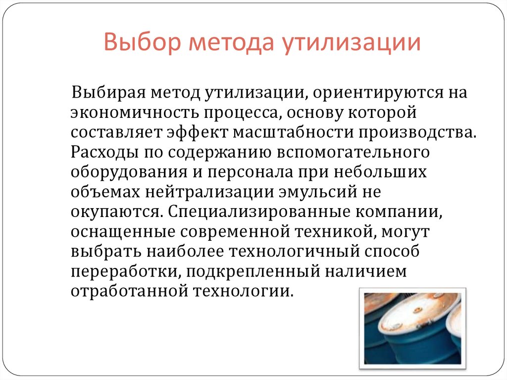 Выбор метода утилизацииВыбирая метод утилизации, ориентируются на