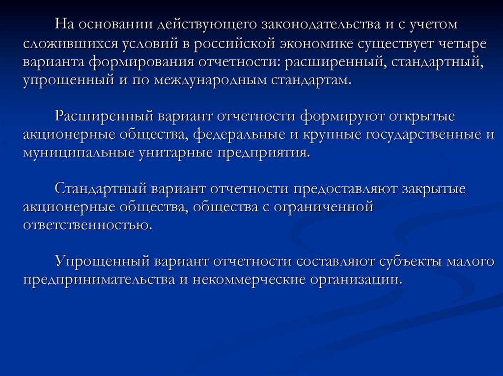 варианта формирования отчетности: расширенный, стандартный,