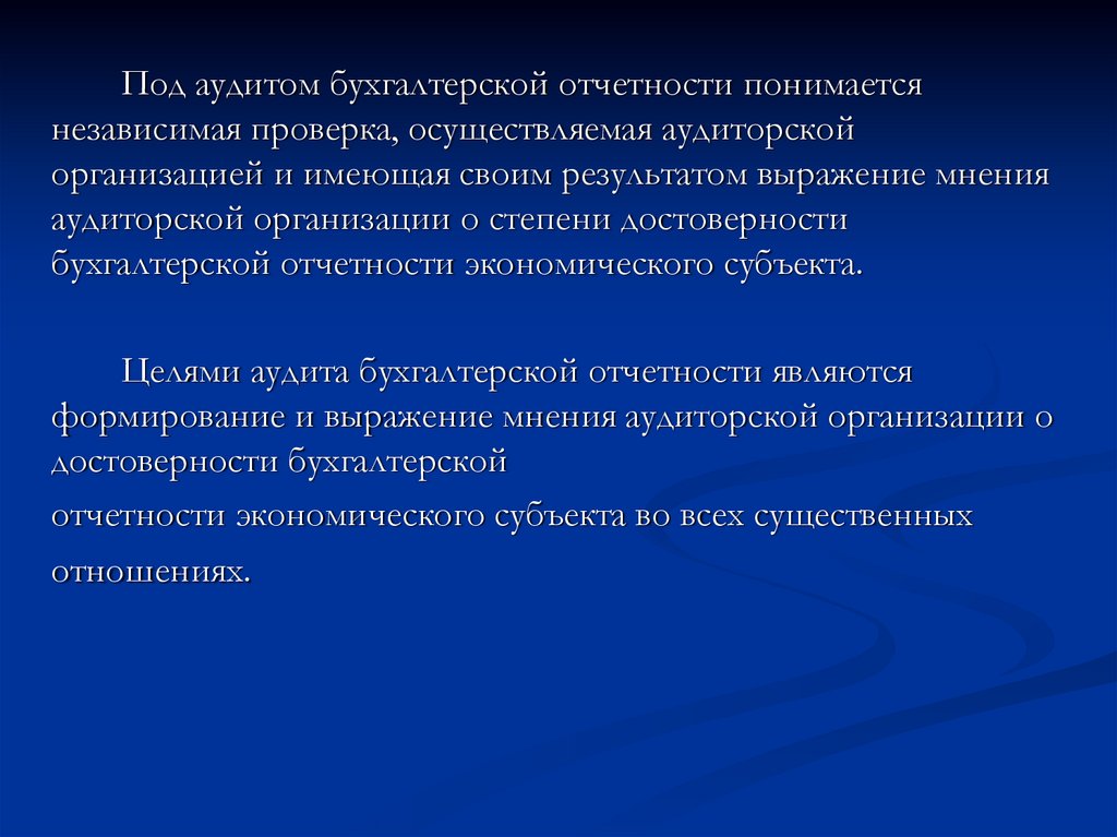 Под аудитом бухгалтерской отчетности понимаетсянезависимая проверка, осуществляемая аудиторской