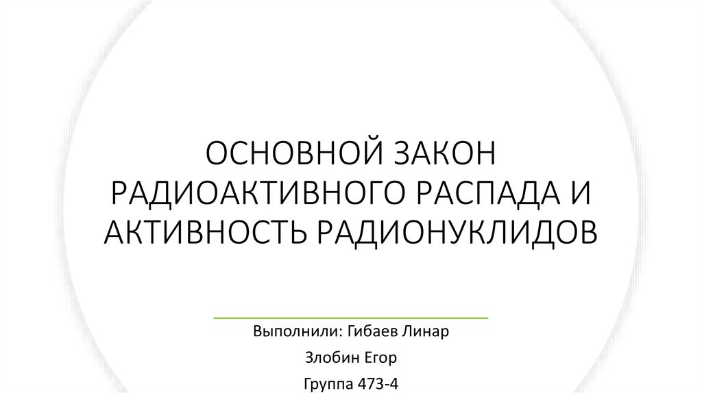 ОСНОВНОЙ ЗАКОНРАДИОАКТИВНОГО РАСПАДА И