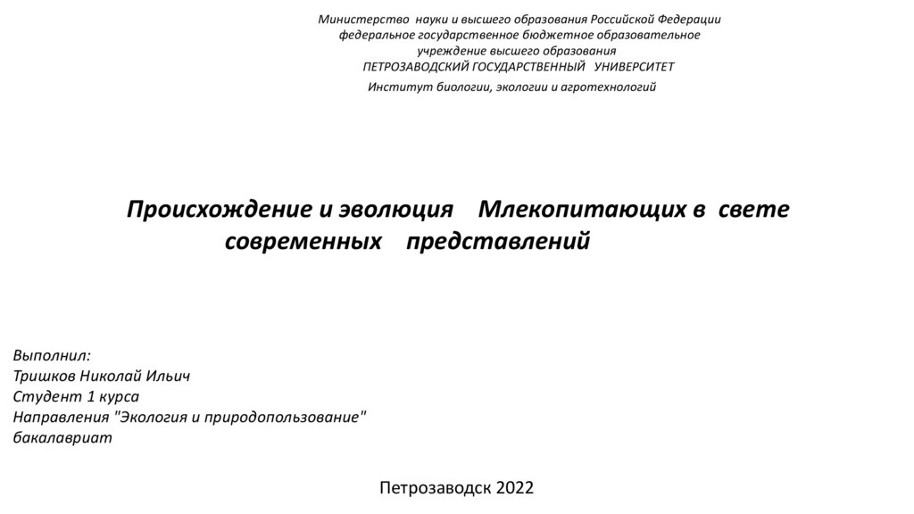 Происхождение и эволюция Млекопитающих в свете современных представлений