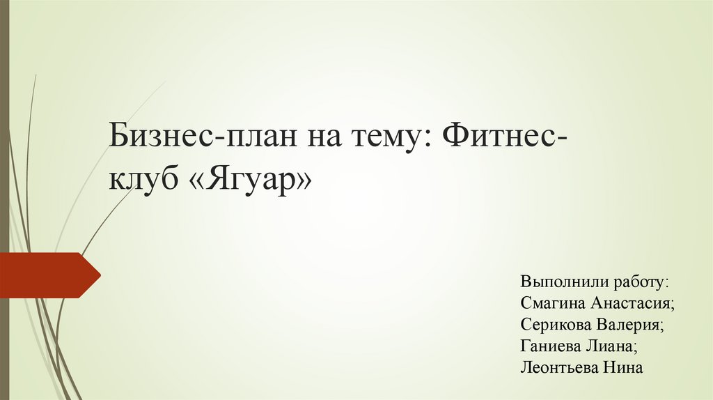 Бизнес-план на тему: Фитнесклуб «Ягуар»