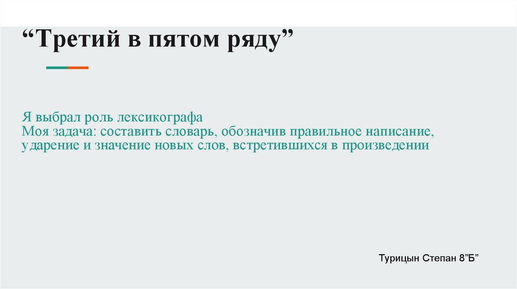“Третий в пятом ряду”Я выбрал роль лексикографа