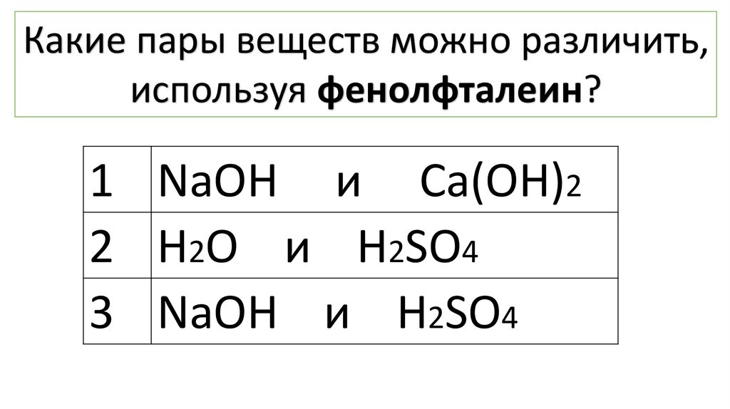 Какие пары веществ можно различить,используя фенолфталеин?