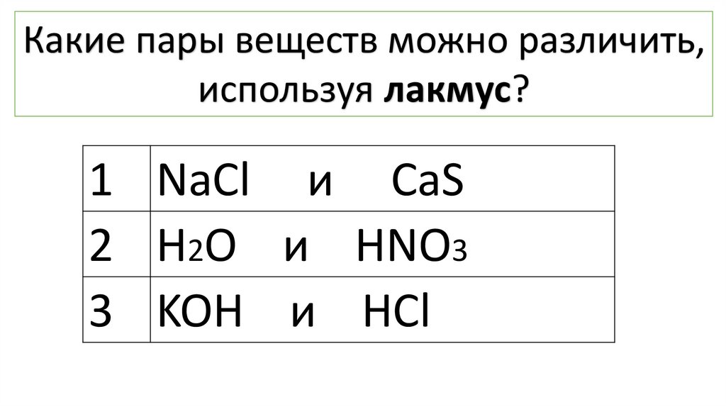 Какие пары веществ можно различить,используя лакмус?
