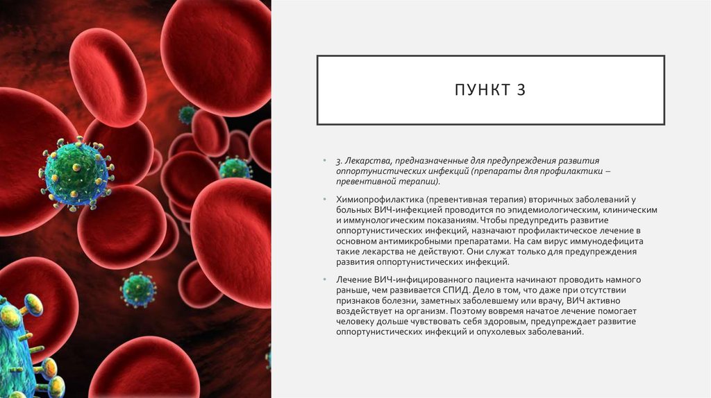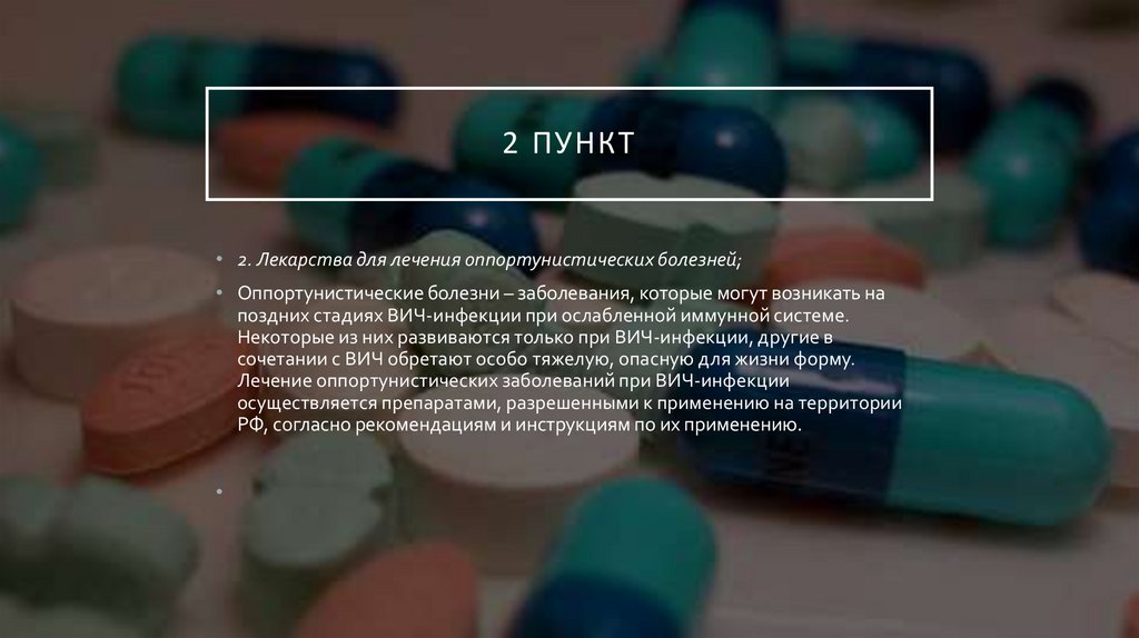 2 ПУНКТ• 2. Лекарства для лечения оппортунистических болезней;