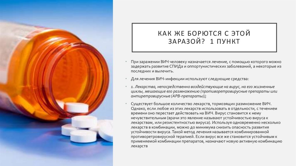 • Существует большое количество лекарств, тормозящих размножение ВИЧ.