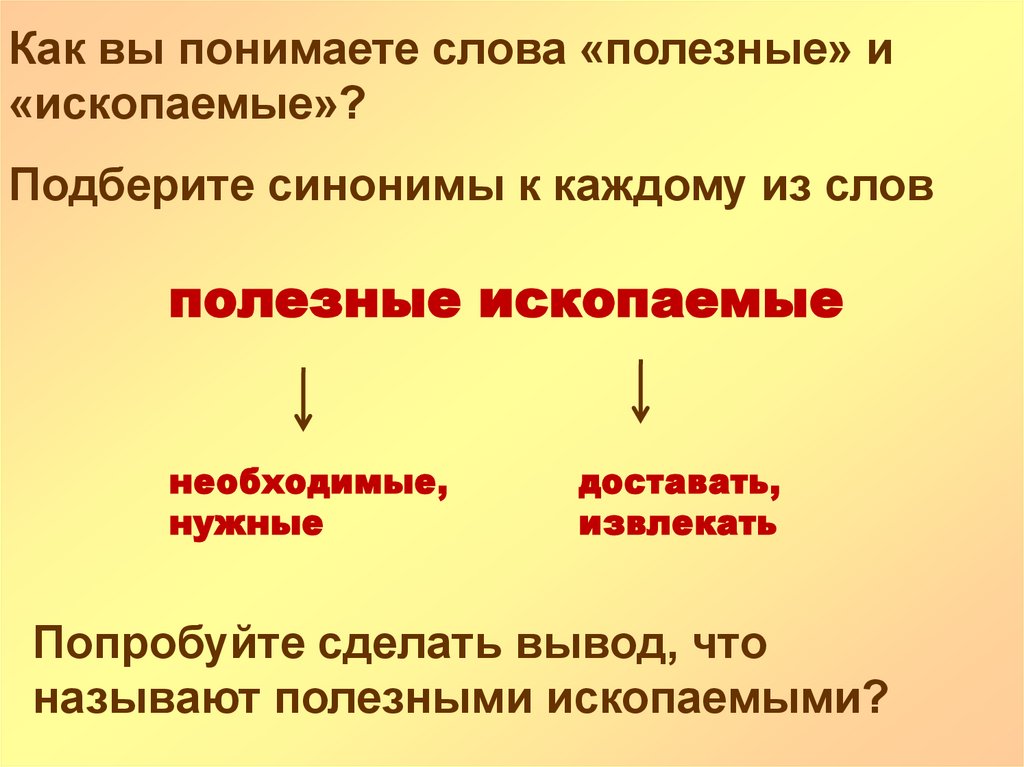 Как вы понимаете слова «полезные» и«ископаемые»?