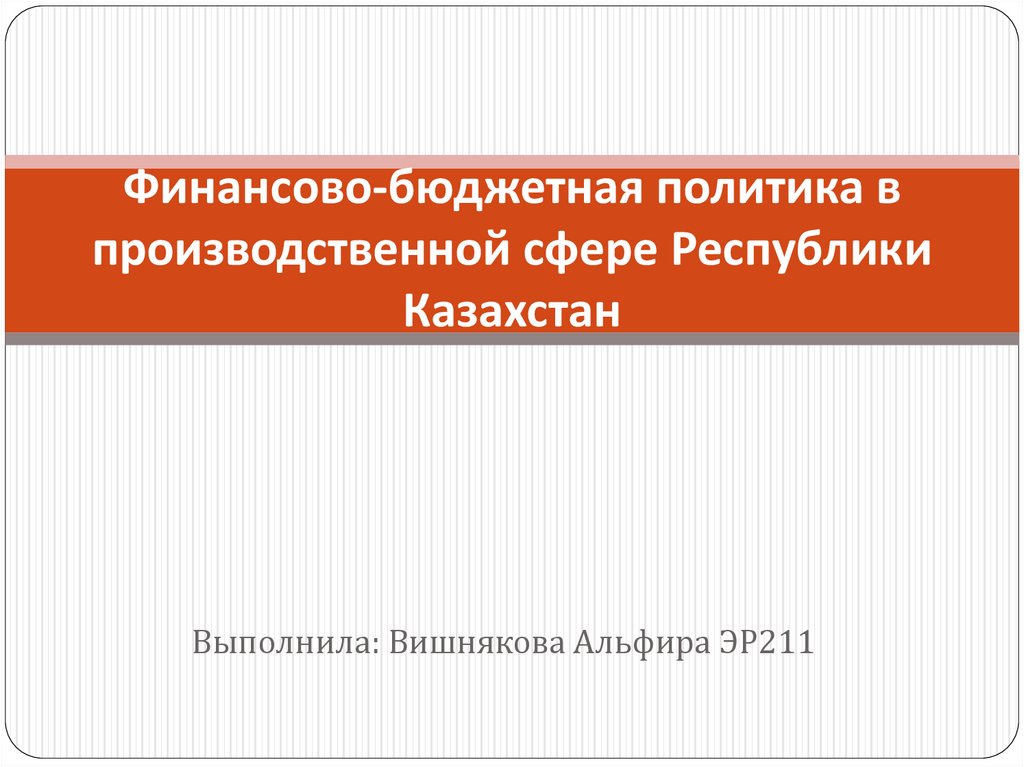 Финансово-бюджетная политика в производственной сфере Республики Казахстан