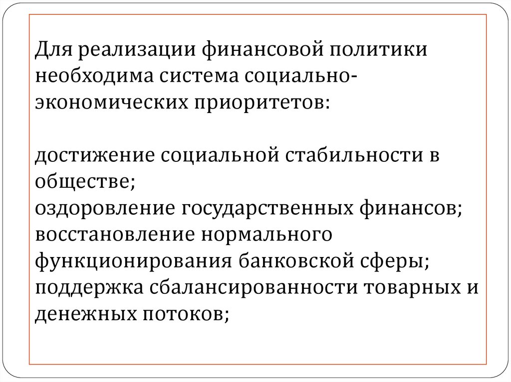 Для реализации финансовой политикинеобходима система социальноэкономических приоритетов: