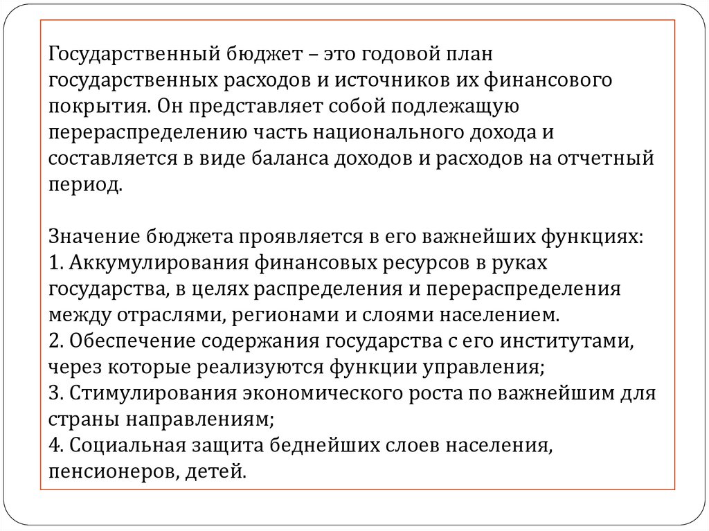 Государственный бюджет – это годовой плангосударственных расходов и источников их финансового