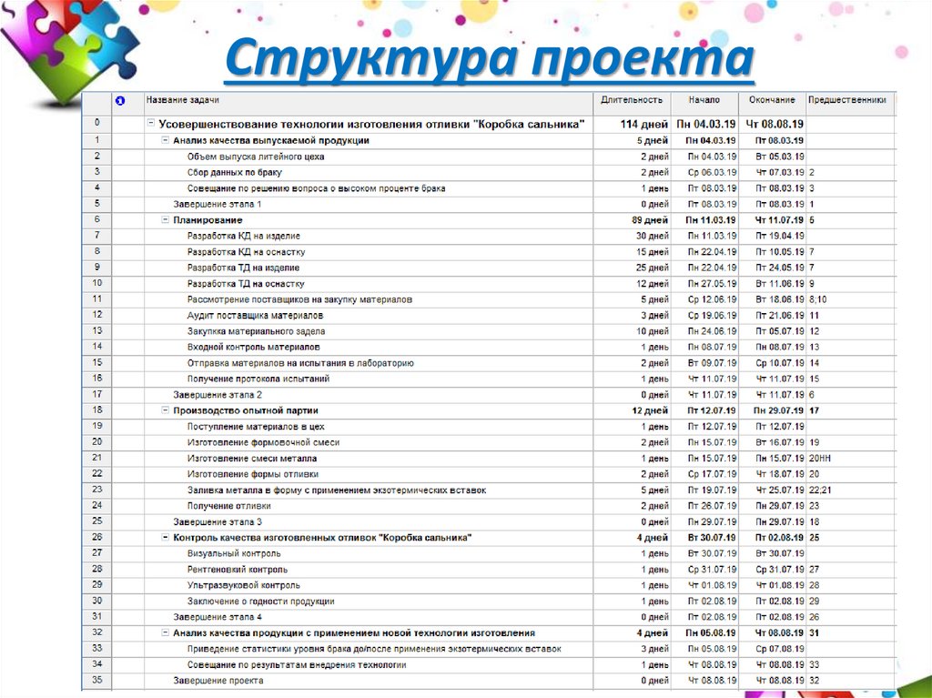 продолжительность проекта по усовершенствованию технологии