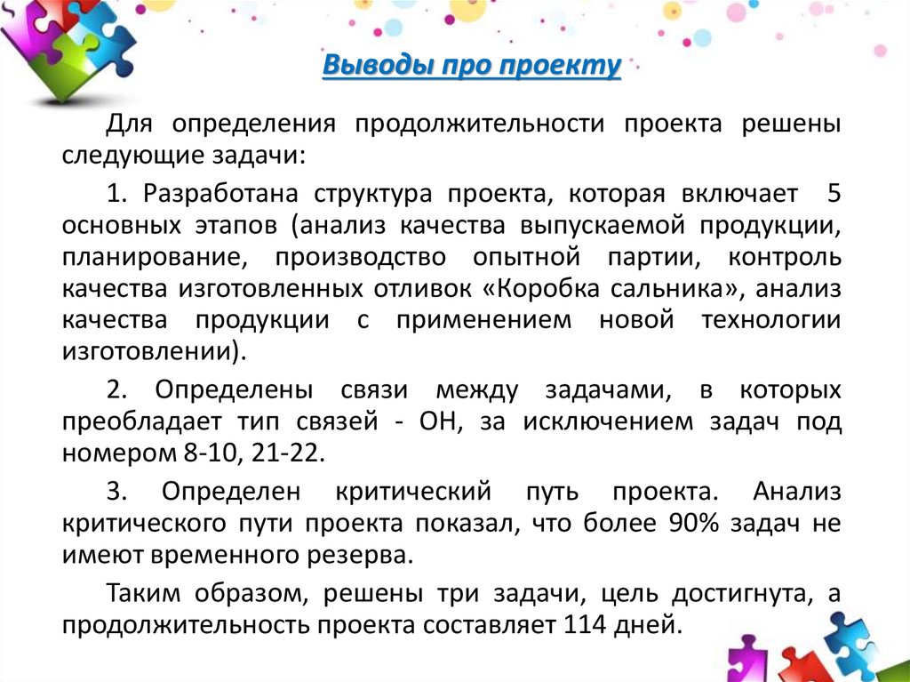 Выводы про проектуДля определения продолжительности проекта решены