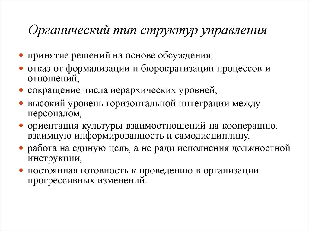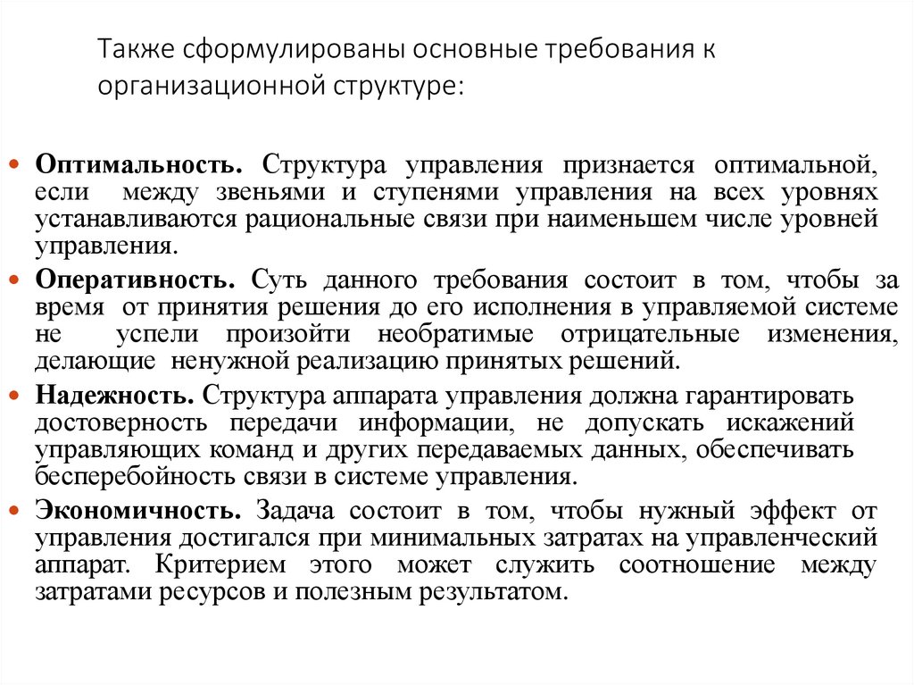 Также сформулированы основные требования корганизационной структуре: