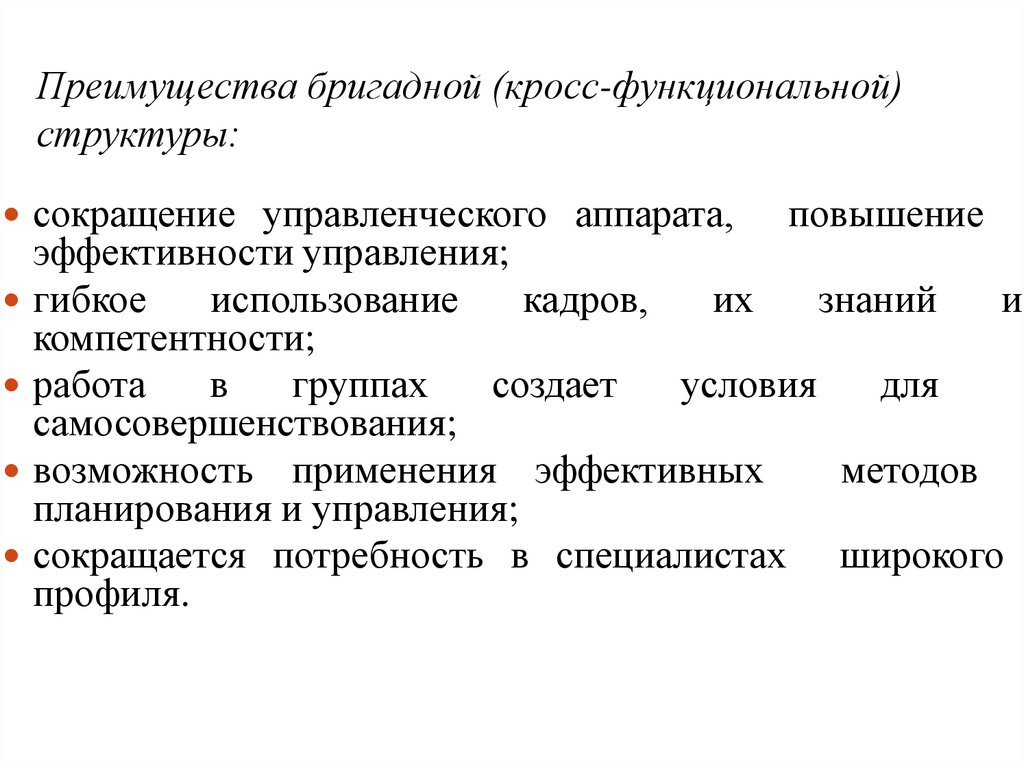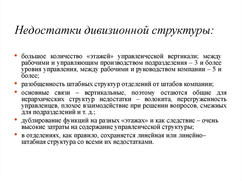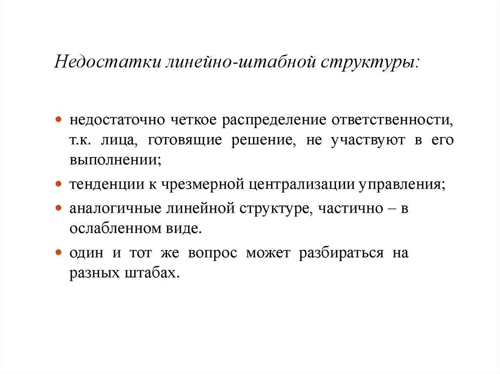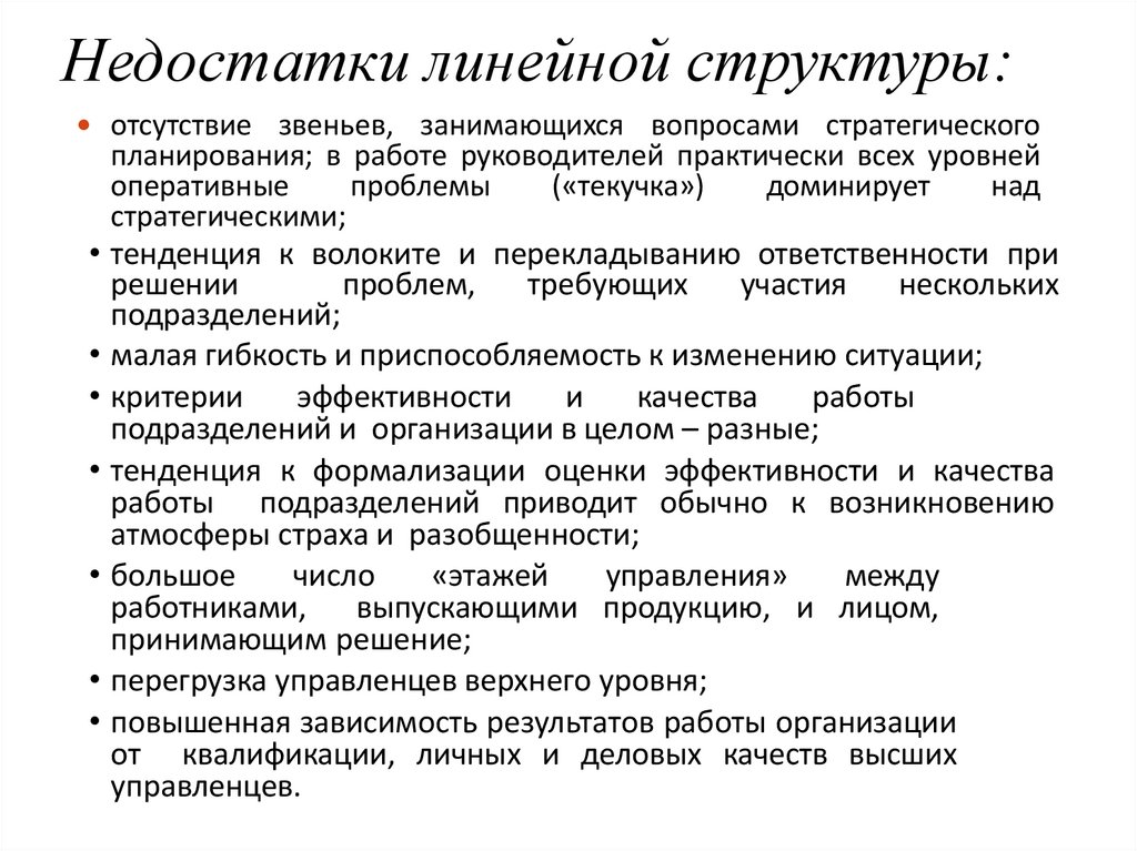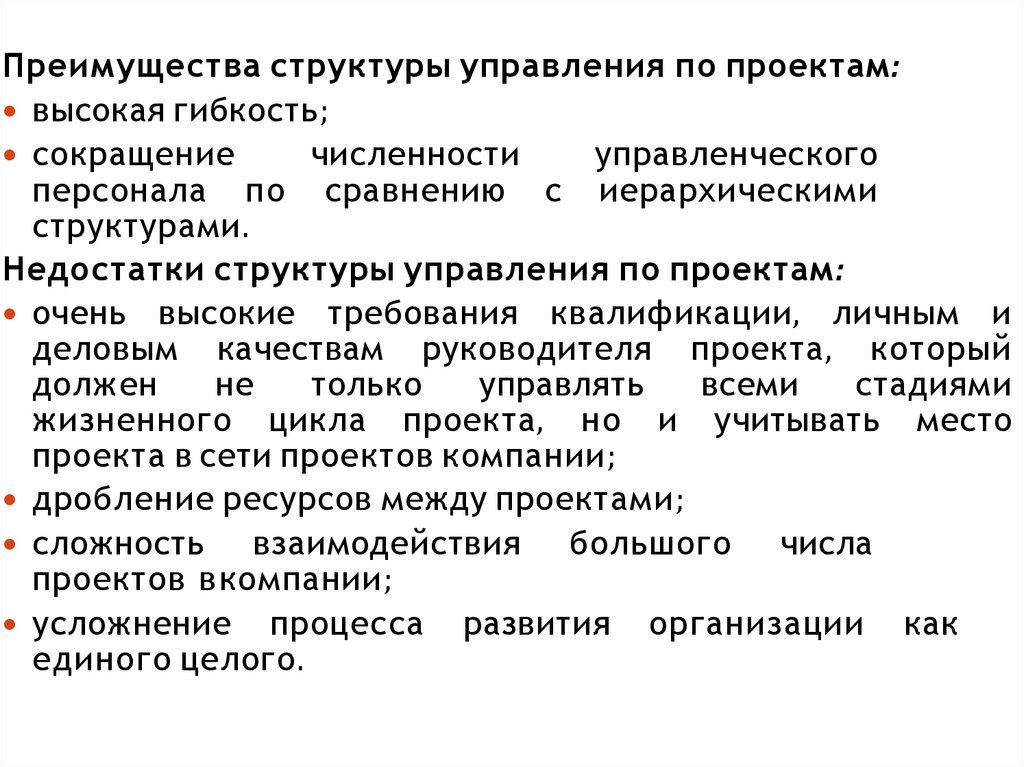 Недостатки матричных структур:• трудность установления четкой ответственности за работу по