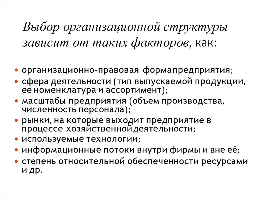 Выбор организационной структурызависит от таких факторов, как: