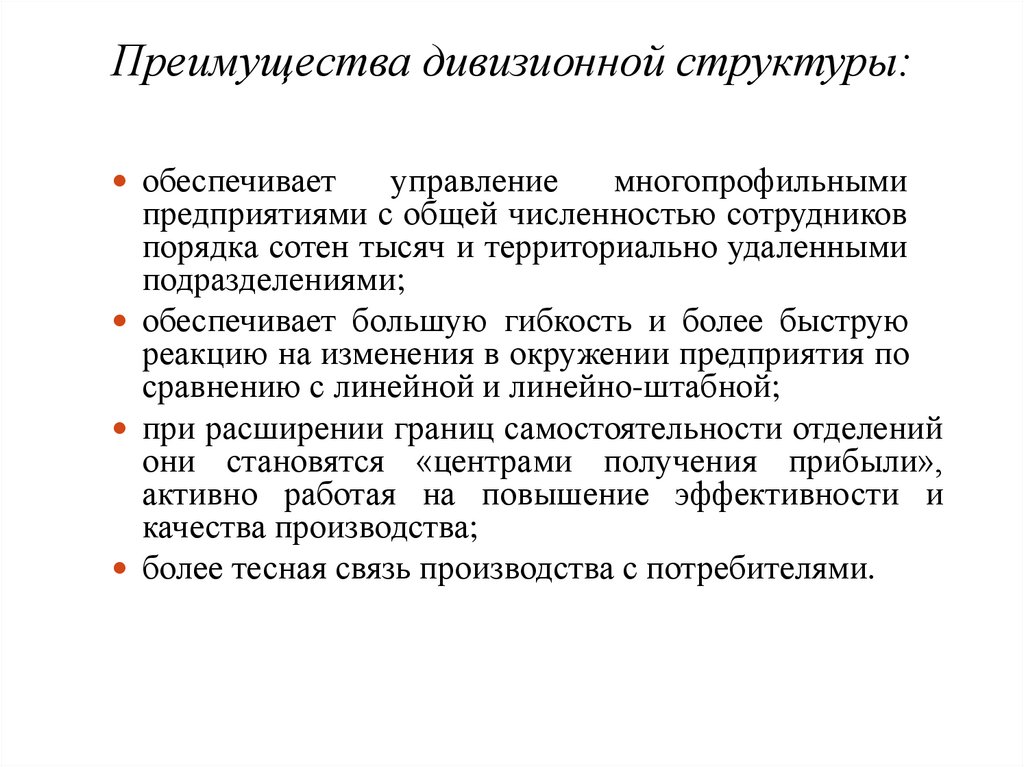 Четкое обособление составных частей организационной структуры