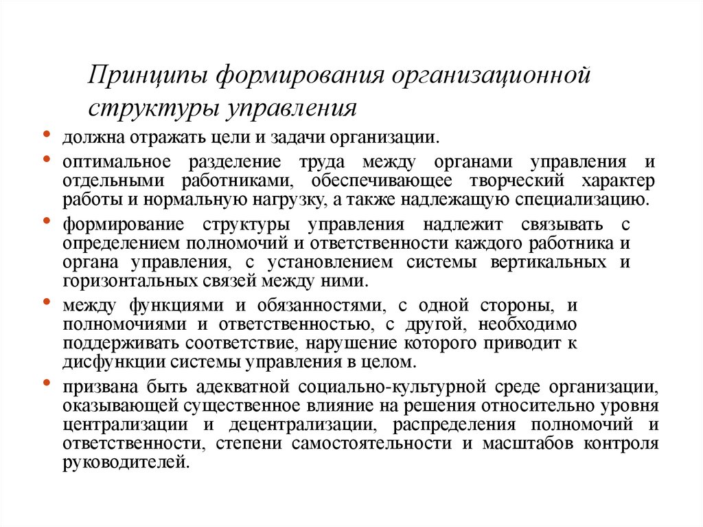 Принципы формирования организационнойструктуры управления