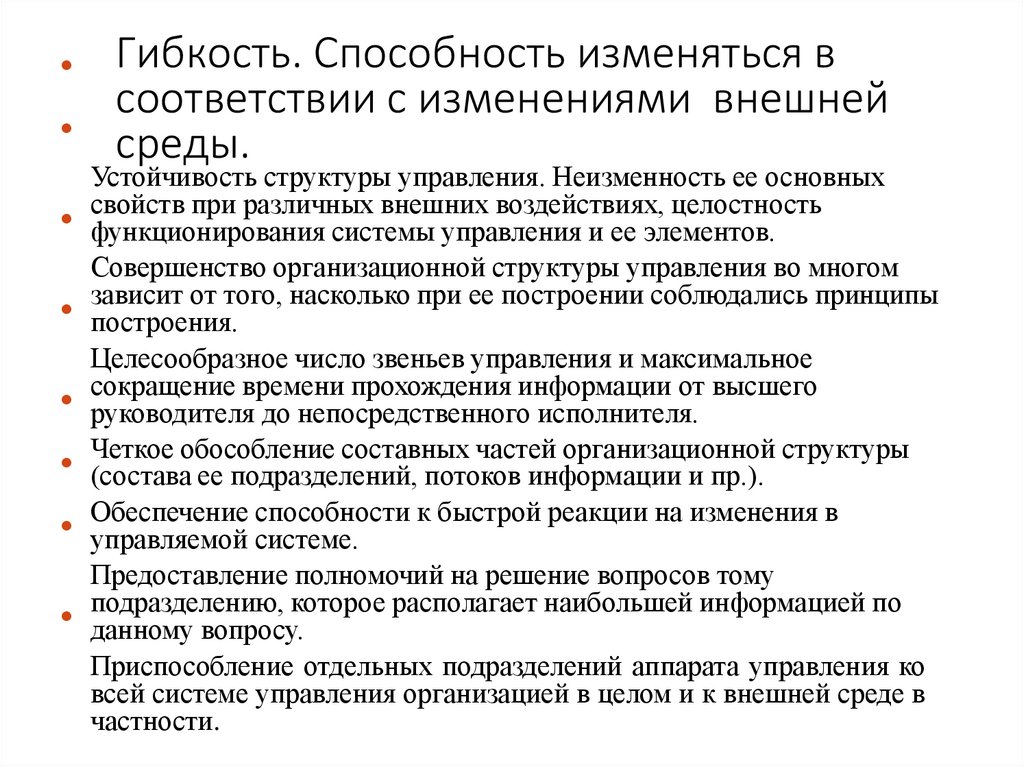 Гибкость. Способность изменяться всоответствии с изменениями внешней