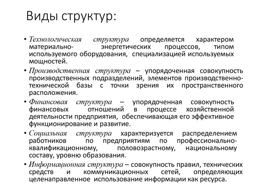 • Производственная структура – упорядоченная совокупность
