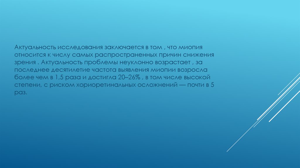 Актуальность исследования заключается в том , что миопияотносится к числу самых распространенных причин снижения