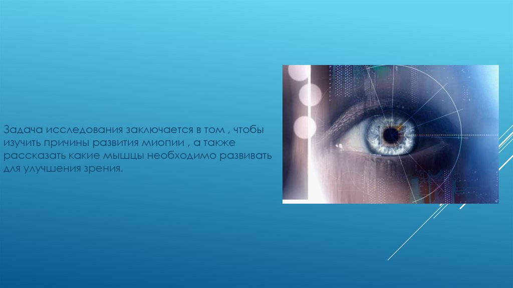 Задача исследования заключается в том , чтобыизучить причины развития миопии , а также