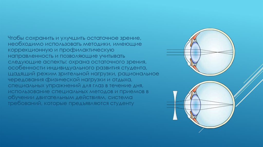 Чтобы сохранить и улучшить остаточное зрение,необходимо использовать методики, имеющие