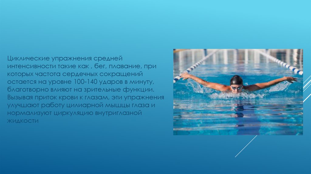 Циклические упражнения среднейинтенсивности такие как , бег, плавание, при