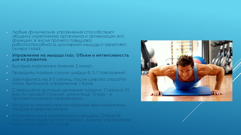 упражнения для улучшения зрительных функций, лечебная физкультура ,а также