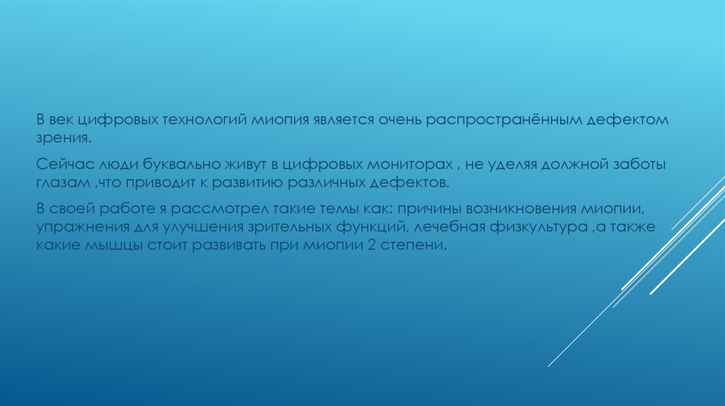 В своей работе я рассмотрел такие темы как: причины возникновения миопии,