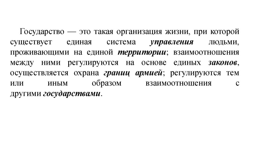 Государство — это такая организация жизни, при которойсуществует