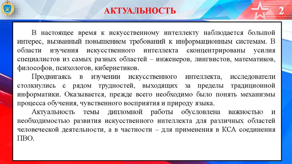 АКТУАЛЬНОСТЬВ настоящее время к искусственному интеллекту наблюдается большой