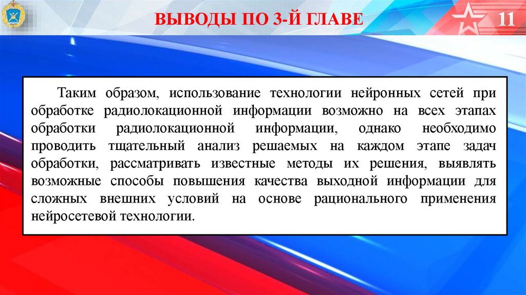 ВЫВОДЫ ПО 3-Й ГЛАВЕТаким образом, использование технологии нейронных сетей при