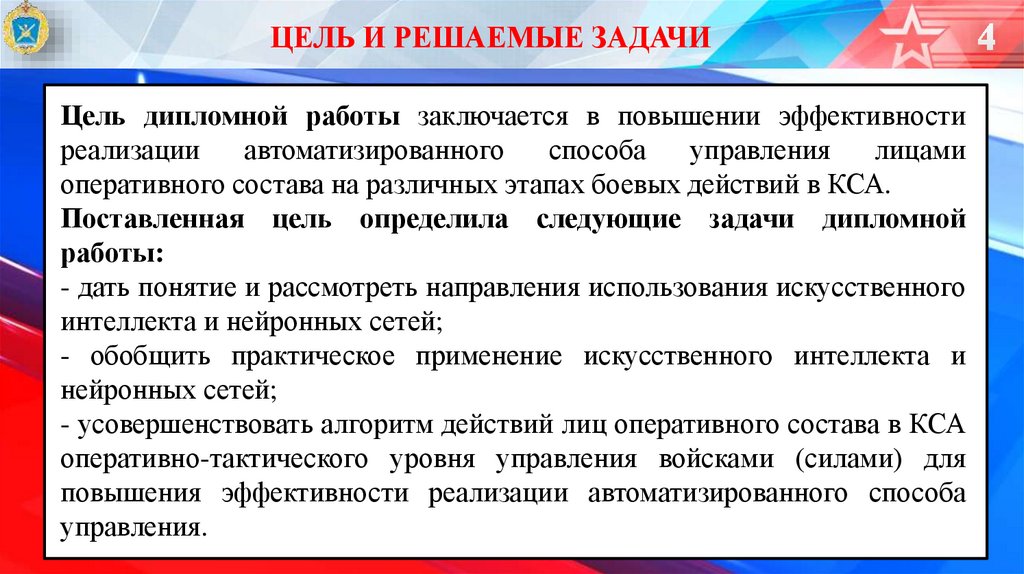 Поставленная цель определила следующие задачи дипломной
